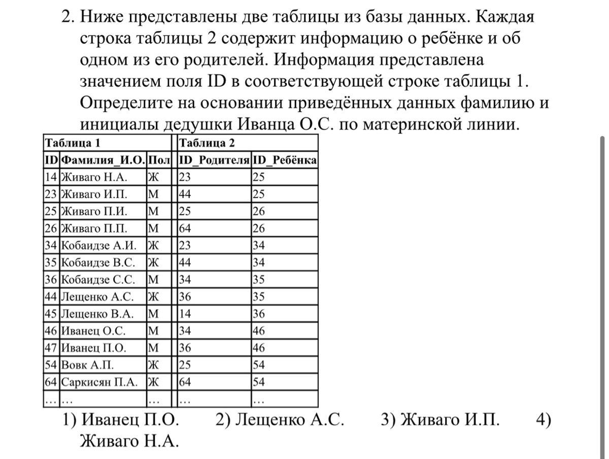 - Иванец О. С. имеет ID 46 (см. Таблицу 1).