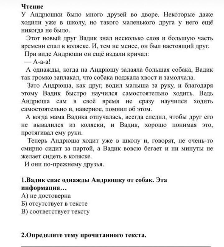 Как у Андрюшки был маленький друг Вадик и, когда на Андрея напала собака, Вадик ему «помог» , а Андрей помог маленькому мальчику( ведь он его водил за ручку , благодаря этому Вадимка и научился ходить) .