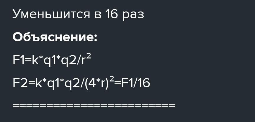 увеличивая расстояние между зарядами в 4 раза во сколько раз изменяется сила притяжения между зарядами