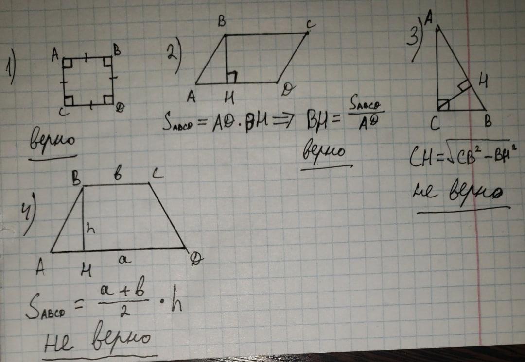 Данное утверждение является верным, так как высотой квадрата будет являться одна из его сторон, а значит эта сторона и будет равна высоте квадрата.