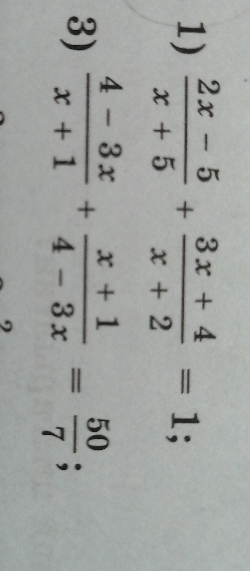 1.)2x-5/x+5 + 3x+4/x+2 - 1=0