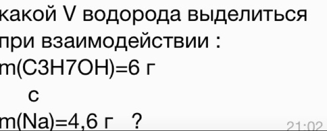 n(Na) > n(C₃H₇OH) след. Na в избытке, в количестве: 0,2-0,1 = 0,1 моль