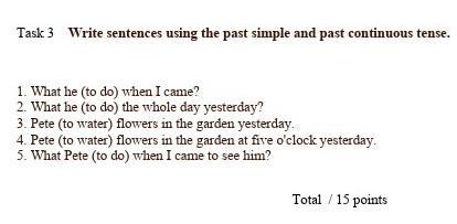 4 Pete was watering flower is the garden at five o'clock yesterday