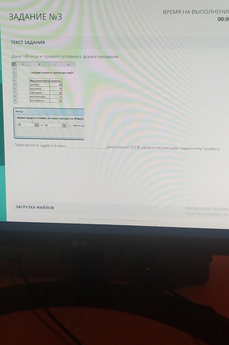 Дана таблица и правило условного форматирования.