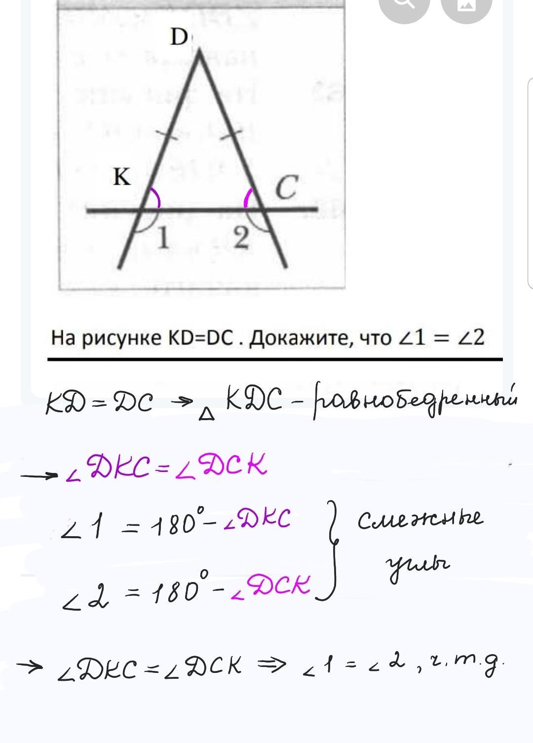 В равнобедренном треугольнике углы у основания равны.