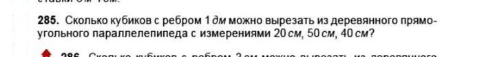 Ответ: 40 кубиков можно вырезать из деревянного прямоугольника параллелепипеда с измерениями 20 см, 50 см, 40 см.