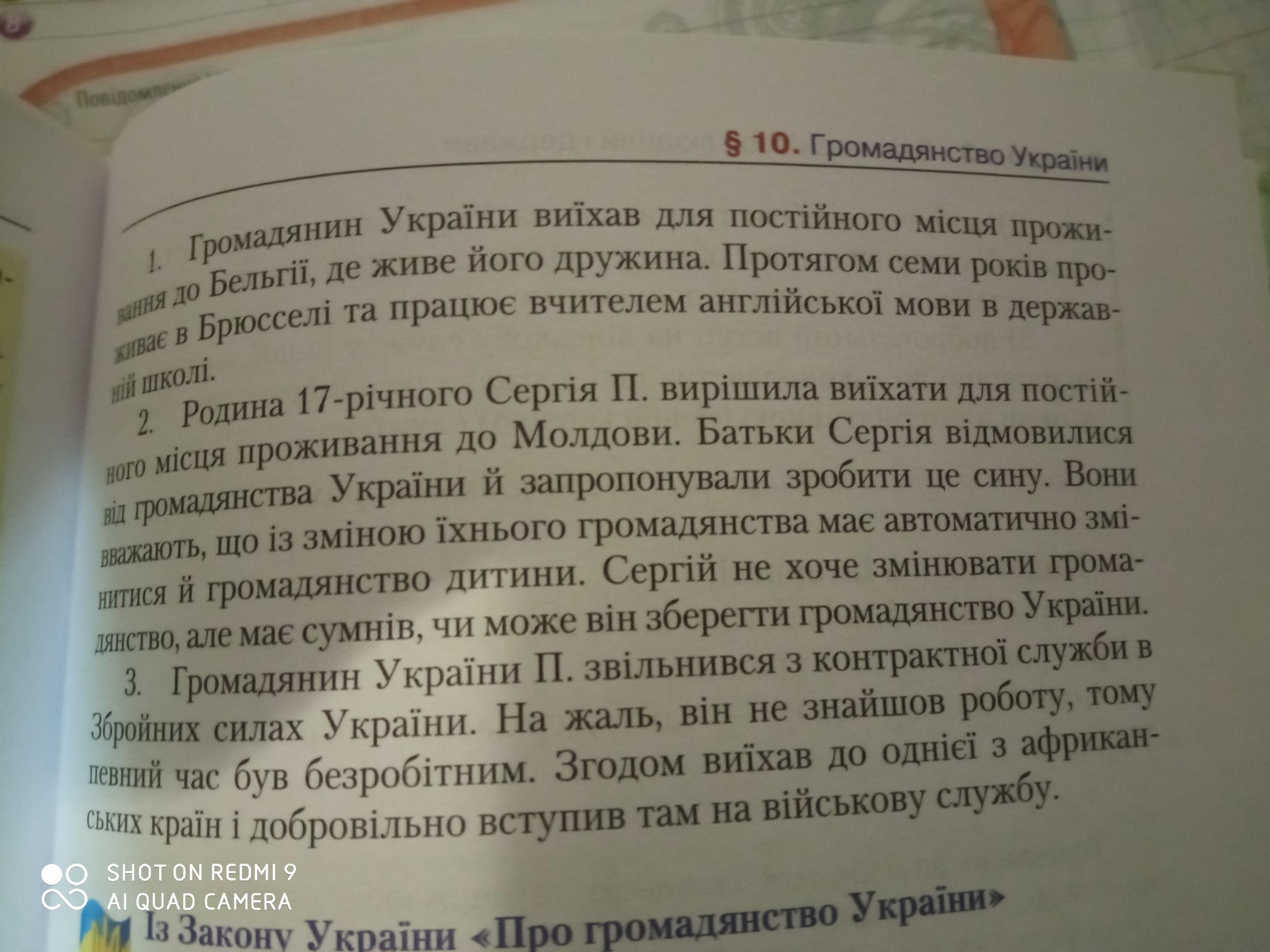 Використовуючи витяги із закону України Про громадянство України, визначте, як буде вирішено питання громадянства в кожному із зазначених випадків. Допоможіть будь-ласка, даю 25 балів, Правознавство