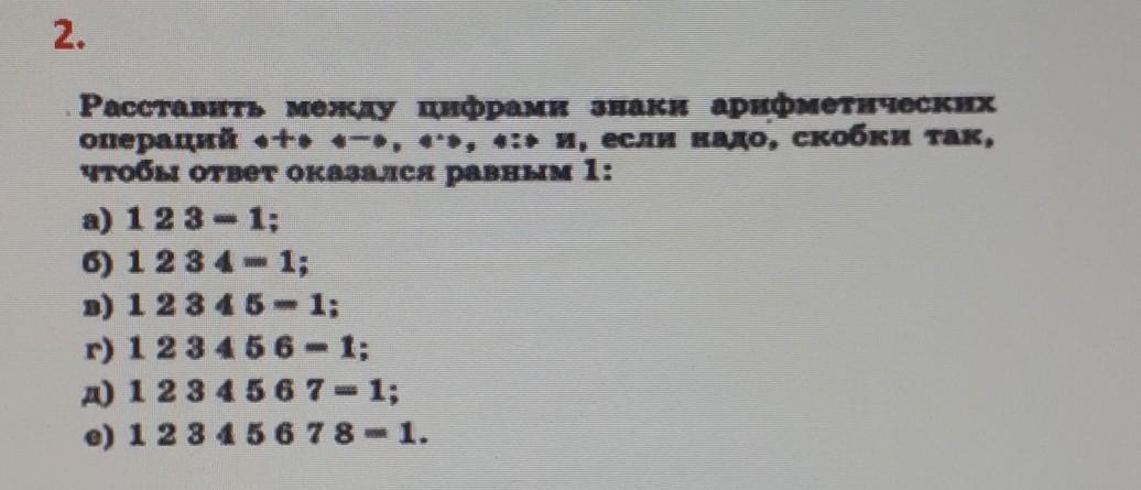 г) 1 * 2 - 3 :(4 +5- 6) =1