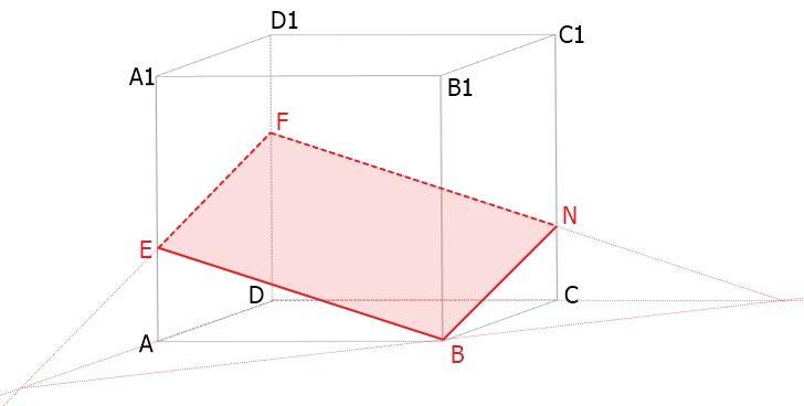 Дан куб ABCDA1B1C1D1. На ребрах AA1 и DD1 отмечены соответственно точки E и F так, что AE:EA1=D1F:FD=1:2. Через точки E, F и вершину B проведена плокость.