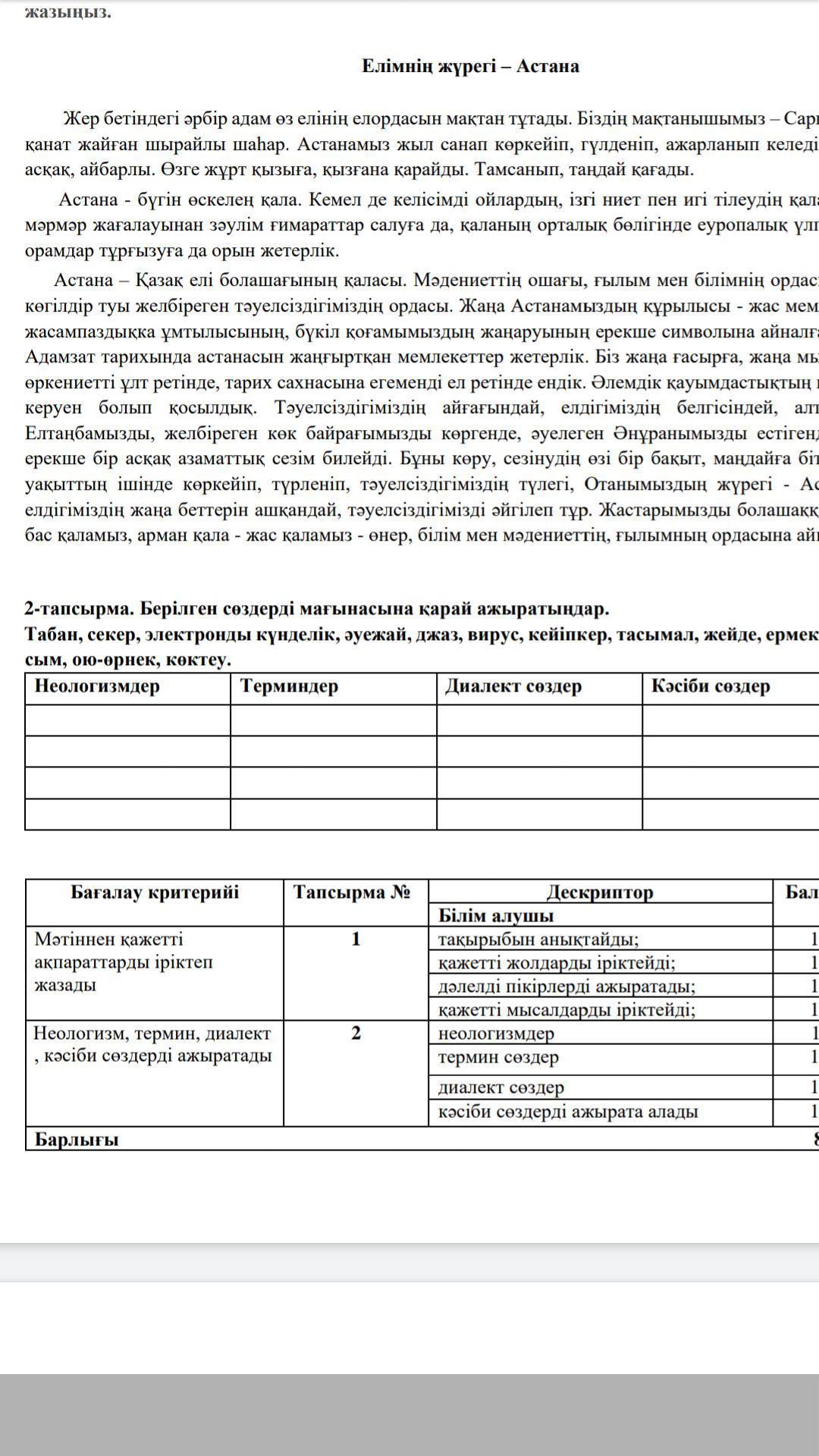 2-тапсырма. Берілген сөздерді мағынасына қарай ажыратыңдар. Табан, секер, электронды күнделік, әуежай, джаз, вирус, кейіпкер, тасымал, жейде, ермексаз, шөміш, сым, ою-өрнек, көктеу.