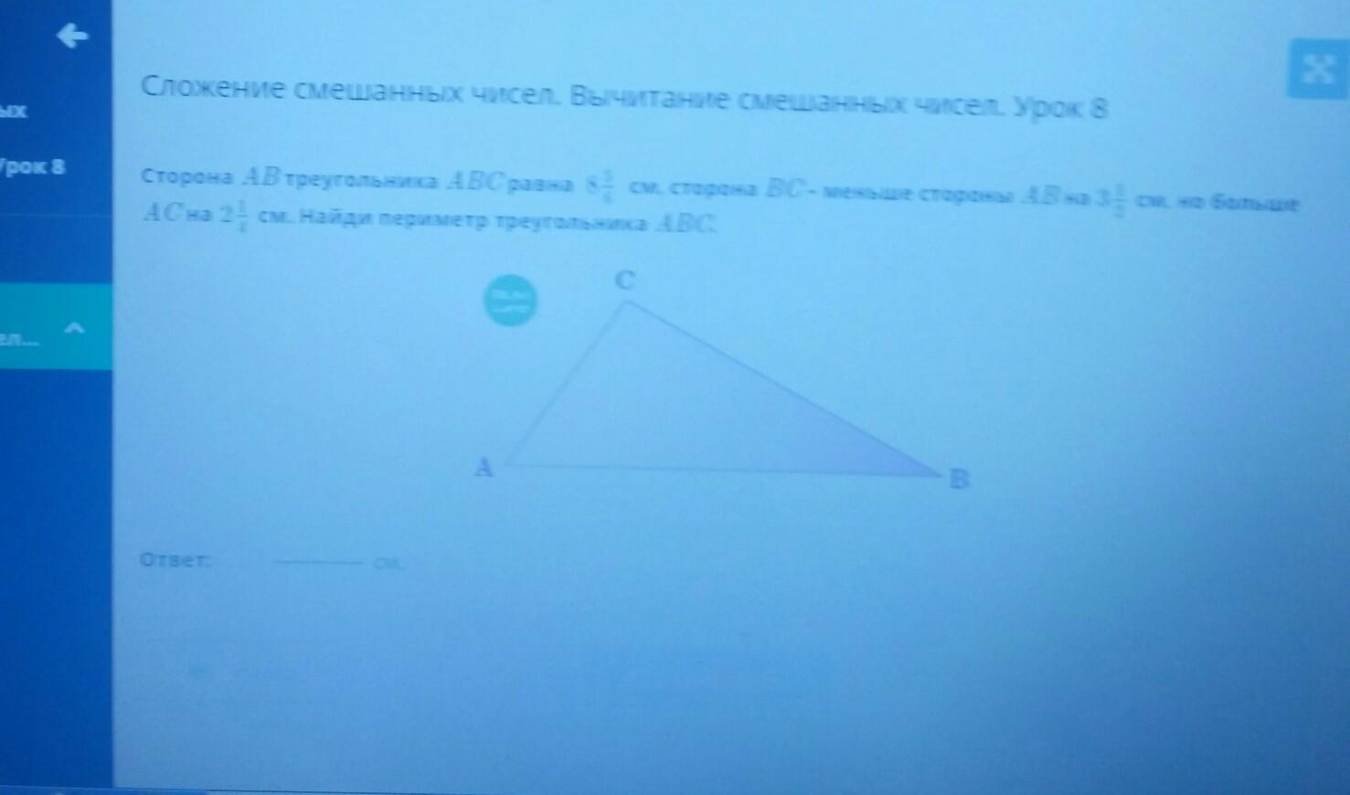сторона AB треугольника ABC равна 8 5/6 см сторона BC длиннее стороны AB на 3 1/2 см больше АС на 2 1/4 см Найди периметр треугольника ABC