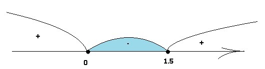, следовательно, справа будет знак "+" дальше знаки чередуются с "-" и "+". Искомый промежуток ![x in [0;1.5]. x in [0;1.5].](https://tex.z-dn.net/?f=x+in+%5B0%3B1.5%5D.)