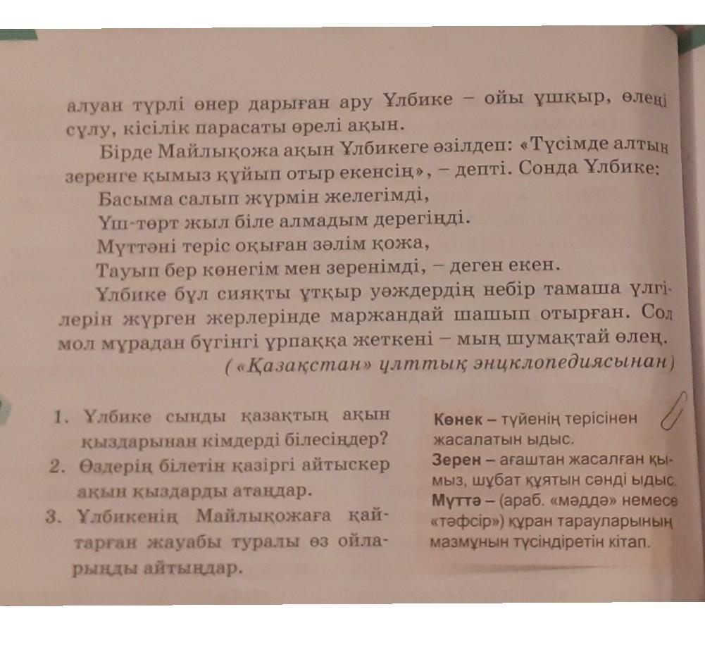 1 Тапсырма: Мәтіннен көнерген сөздерді тауып, мағынасын ашыңдар және түрлеріне қарай ажыратыңдар.