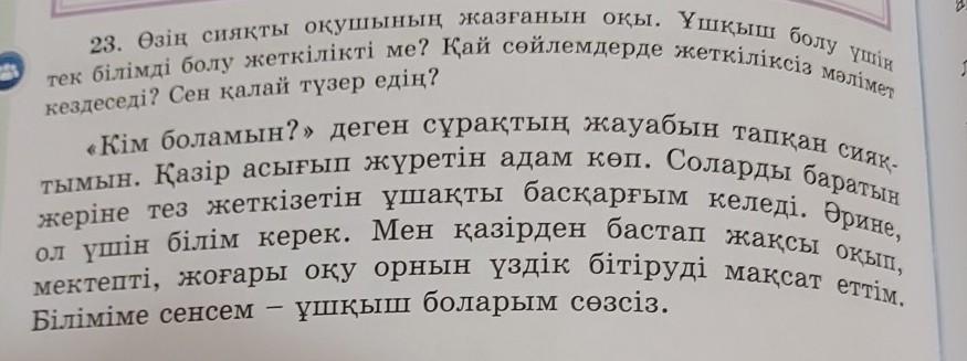 Ответ:Ұшақты басқарғың келсе,сізге тек білім қажет емес,адамгершілік те қажет.Ұшқыш болғың келсең,көптеген сабақтарды жақсы оқуың керексің.Мысалға,ағылшын тілі мен физика.Ұшқыш болып,басқа адамдардың өмірі туралы ойламасаң,ұшақты да дұрыс басқара алмайсыз деген сөз.