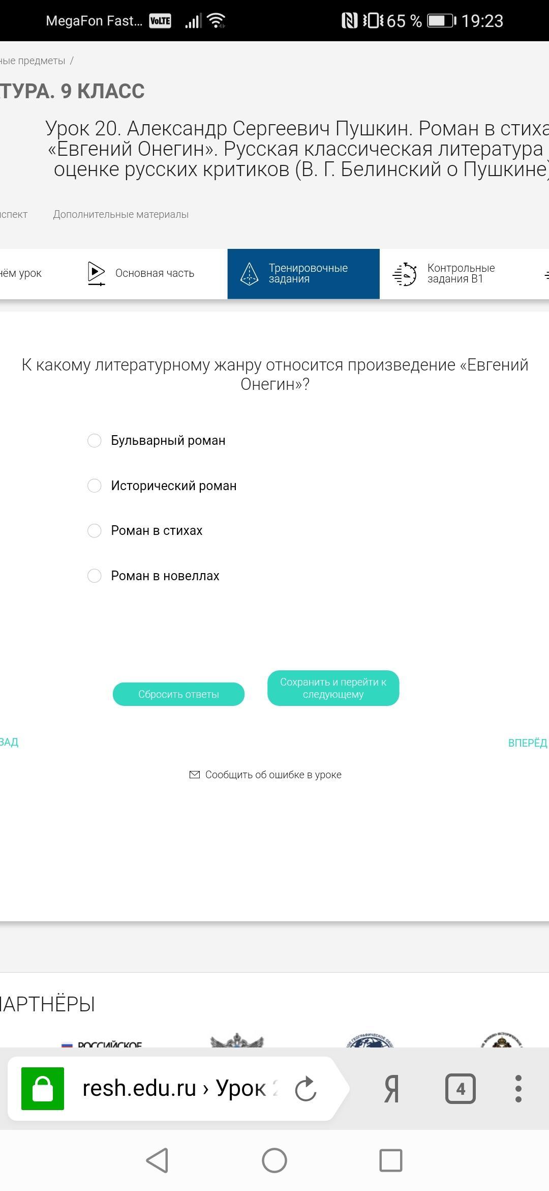 Жанр произведения "Евгений Онегин" - роман в стихах.