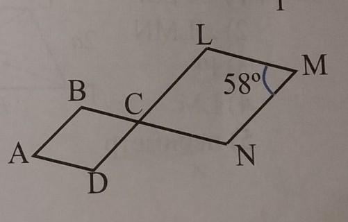 отрезки BN и DL пересекаются в точке C ABCD и CLMN паралалеграммы Если угол M=58° то:
