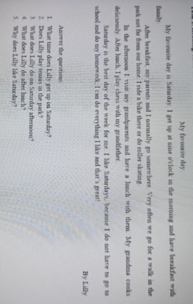 5. Lily likes saturdays because she doesn’t have to go to school or do homework and can do everything she wants to