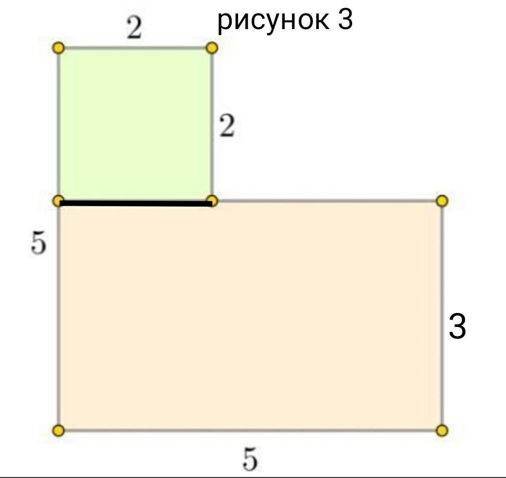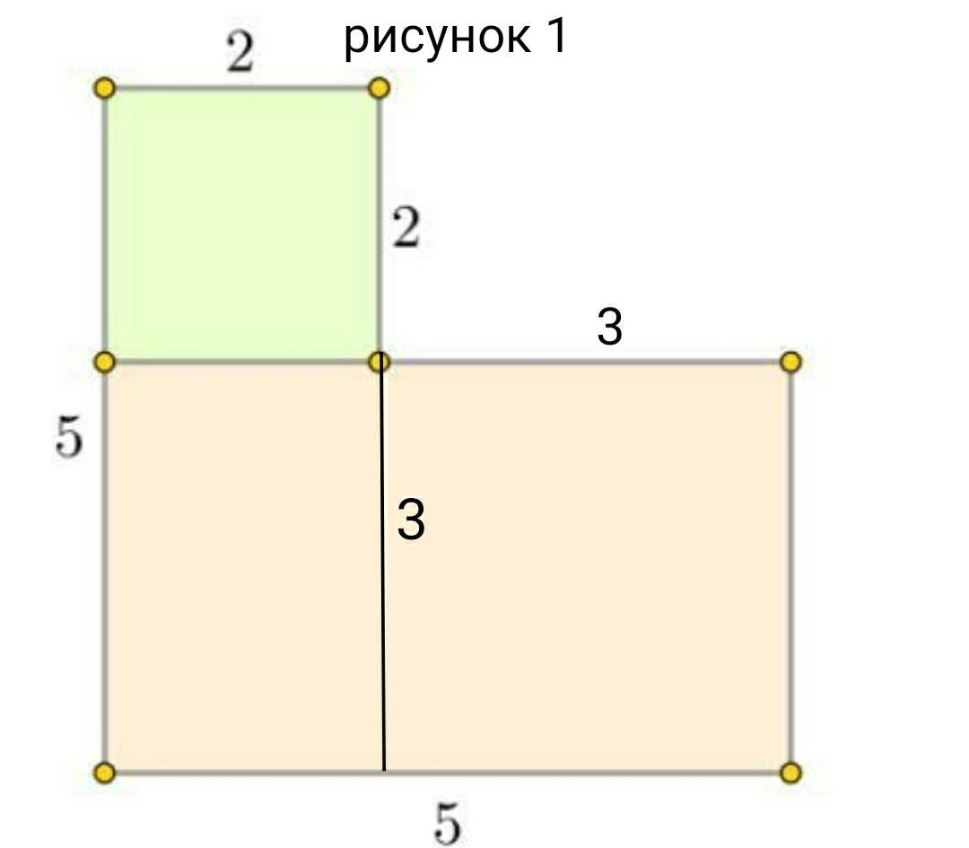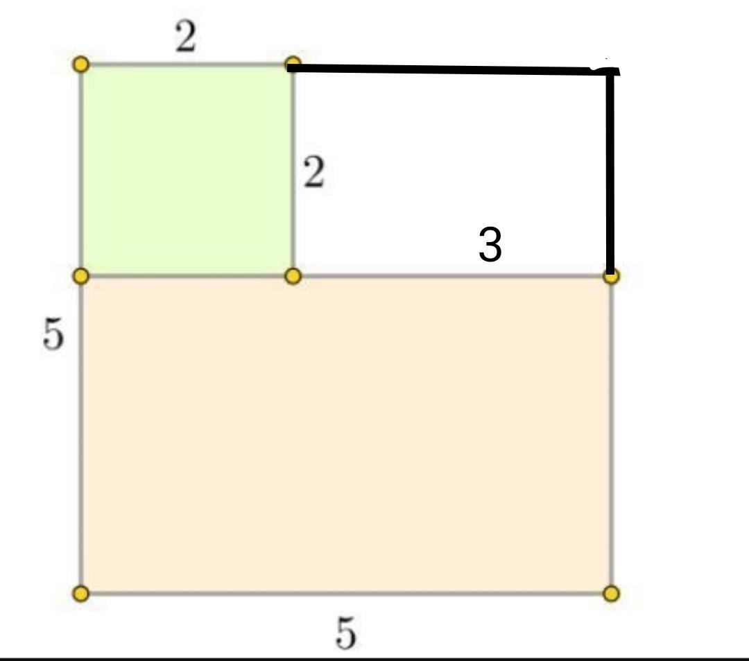 Получили прямоугольник со сторонами 2×5, и квадрат со сторонами 3×3