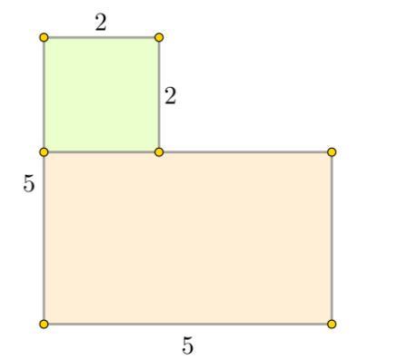 Прямоугольник со сторонами 5×3 и квадрат со сторонами 2×2