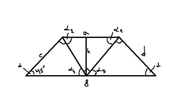 Если углы при большем основании 45, значит углы при меньшем равны 180-45=135. Таким образом угол α1=135-90=45. Аналогично α2=45. Значит треугольник, образованный отрезками, проведенными к вершинам тупых углов из середины основания равнобедренный и прямоугольный. Также получаются равнобедренными прямоугольными и 2 других треугольника, при этом они будут равны первому ибо имеют с ним общие стороны (плюс два угла 90 и 45, значит равны по 2му признаку). По теореме Пифагора находим