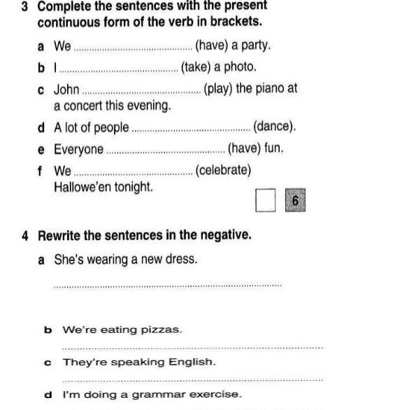2) we are not eating pizzas 3) they are not speaking English 4) i am not doing a grammar exercise