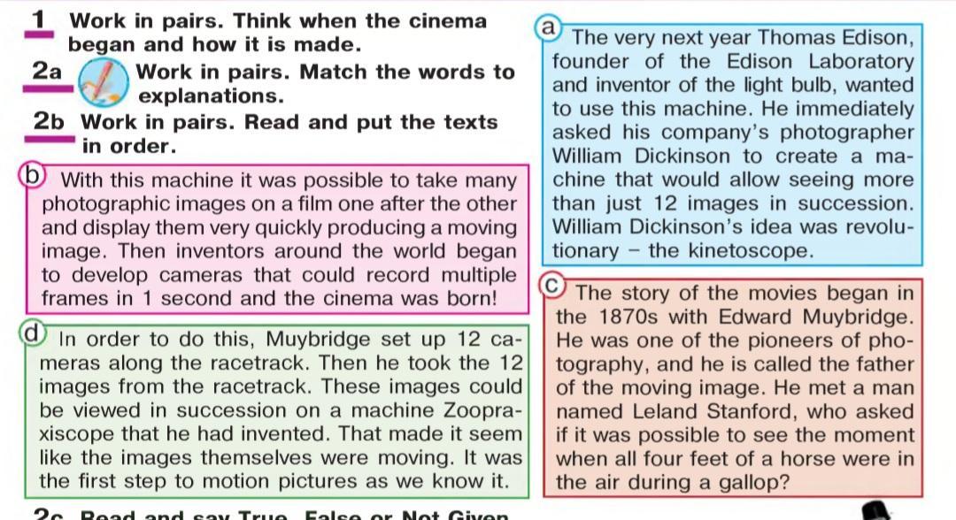 W ork in pairs. Read and pu t th e te xts