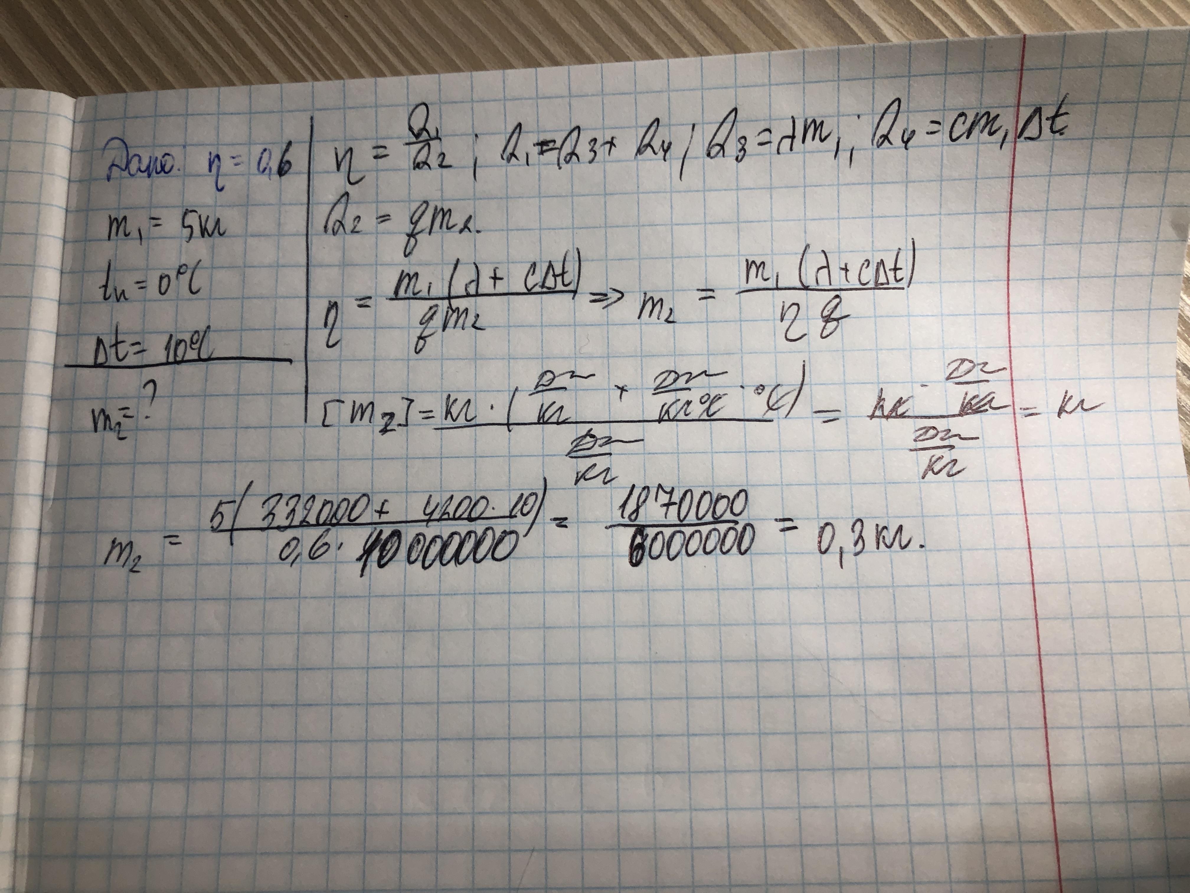 Яку масу дров потрібно спалити в плиті з ККД 60% щоб розплавити 5 кг льоду за температури 0 градусів цельсію і отриману воду нагріти на 10 градусів цельсію! Срочно допоможіть