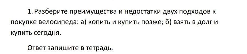 Напишите плюсы и минусы - копить и купить велик позже, взять в долг и купить сегодня