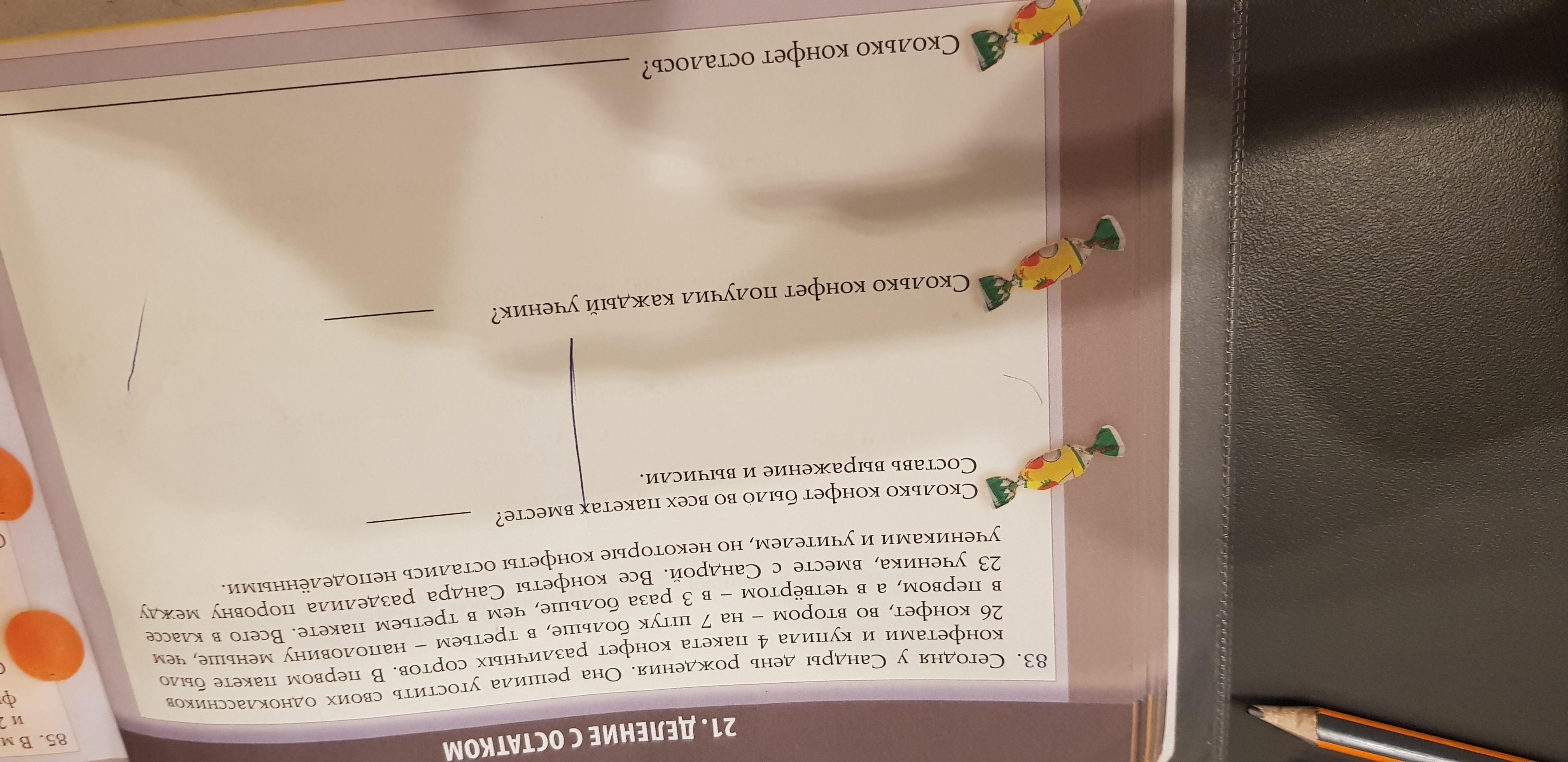 3) 111 - (24*4) = 111 - 96 = 15 (конфет осталось).