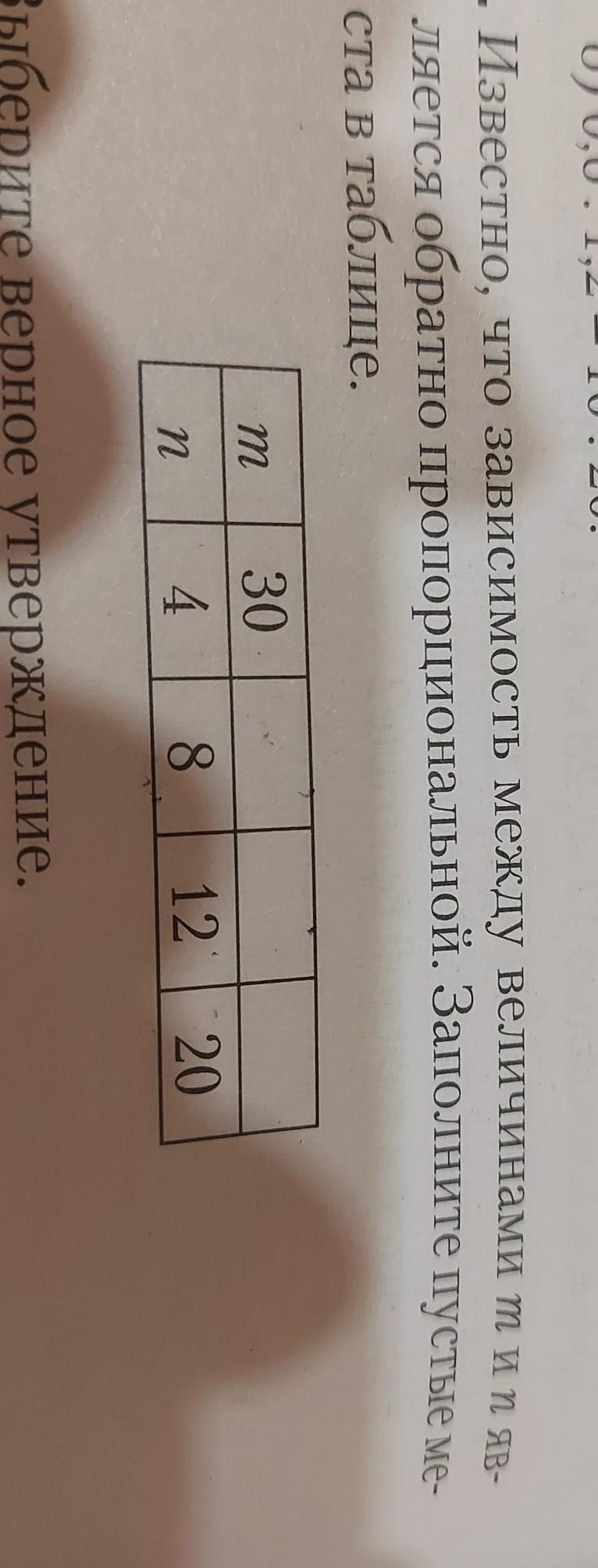 Известно, что зависимость между велечинами m и n является обратно пропорциональной. Заполните пустые места в таблице. Помогите, срочно