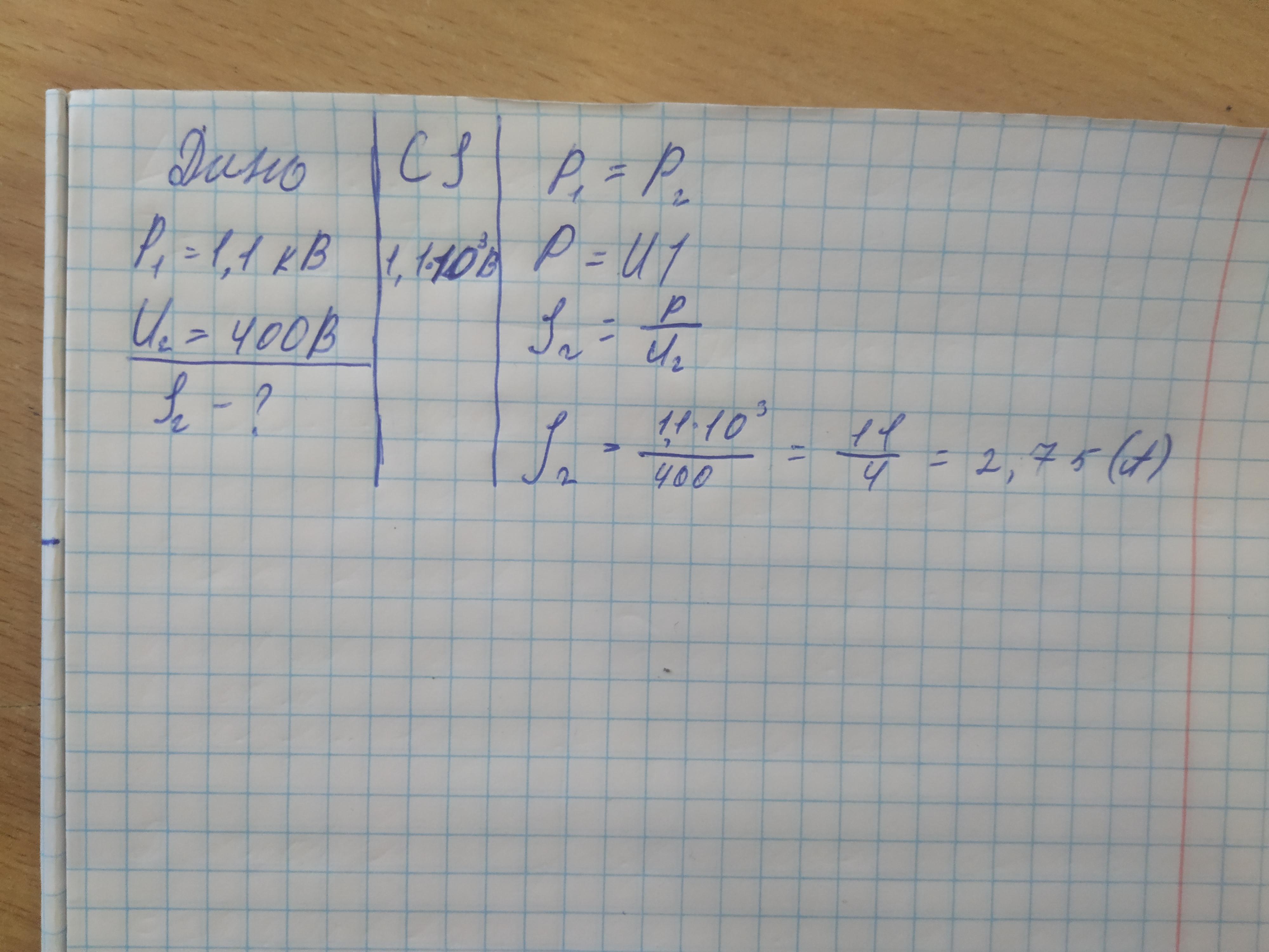 Вхідна потужність трансформатора 1, 1 квт. визначити силу струму у вторинній обмотці якщо напруга на ній 400 в, а втратами енргії можна знехтувати