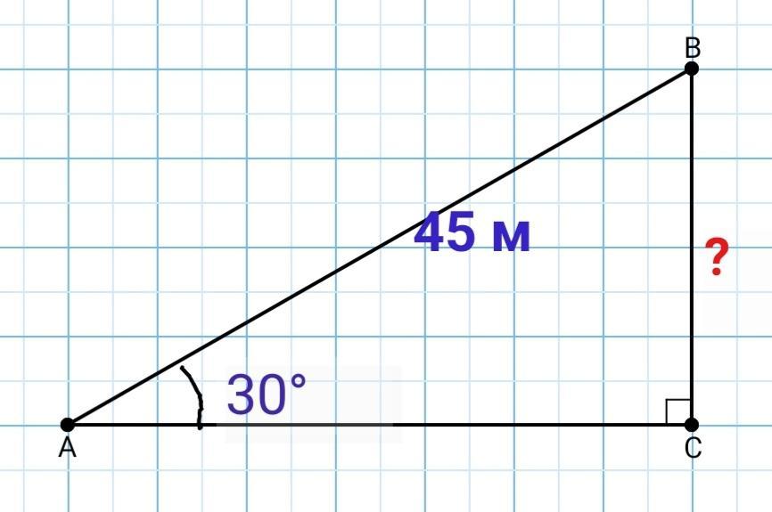 ВС = 1/2 АВ = 1/2×45=22,5 м
