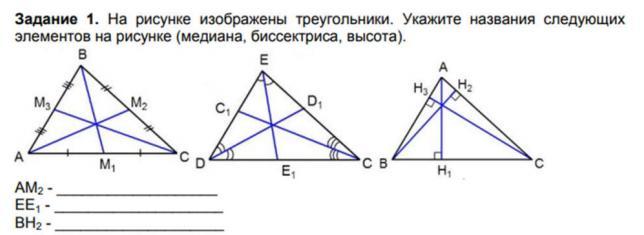 элементов на рисунке (медиана, биссектриса, высота)
