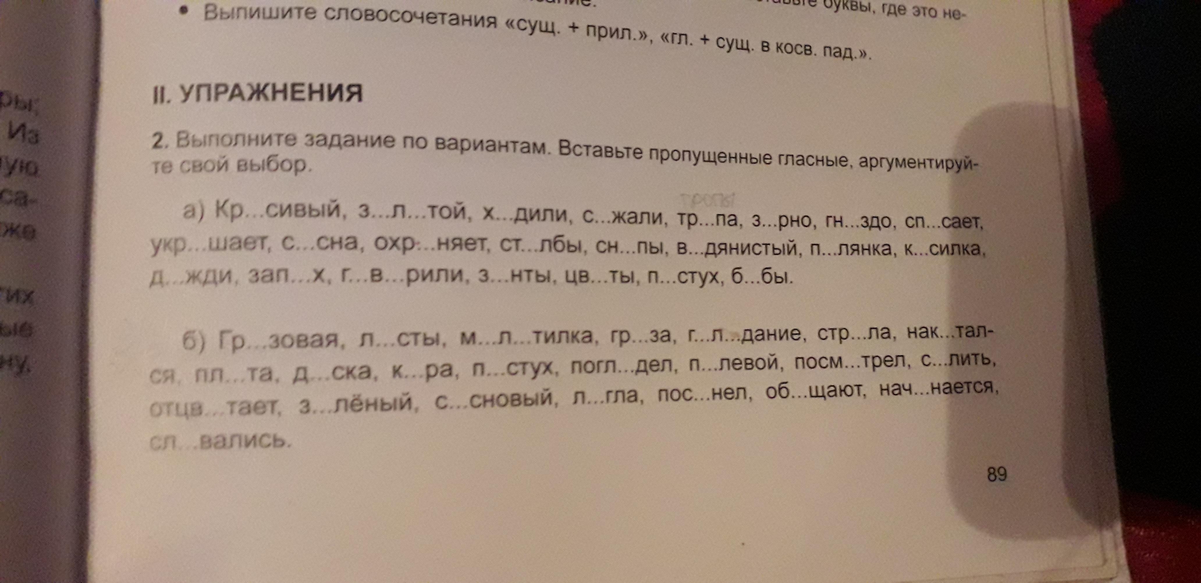 а) Красивый, золотой, ходили, сажали, тропа, зерно, гнездо, спасает, украшает, сосна, охраняет, столбы, снопы, водянистый, полянка, косилка, дожди, запах, говорили, зонты, цветы, пастух, бобы.