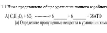 1.1 Ниже представлено общее уравнение полного аэробного процесса дыхания. Определить пропущенные вещества.