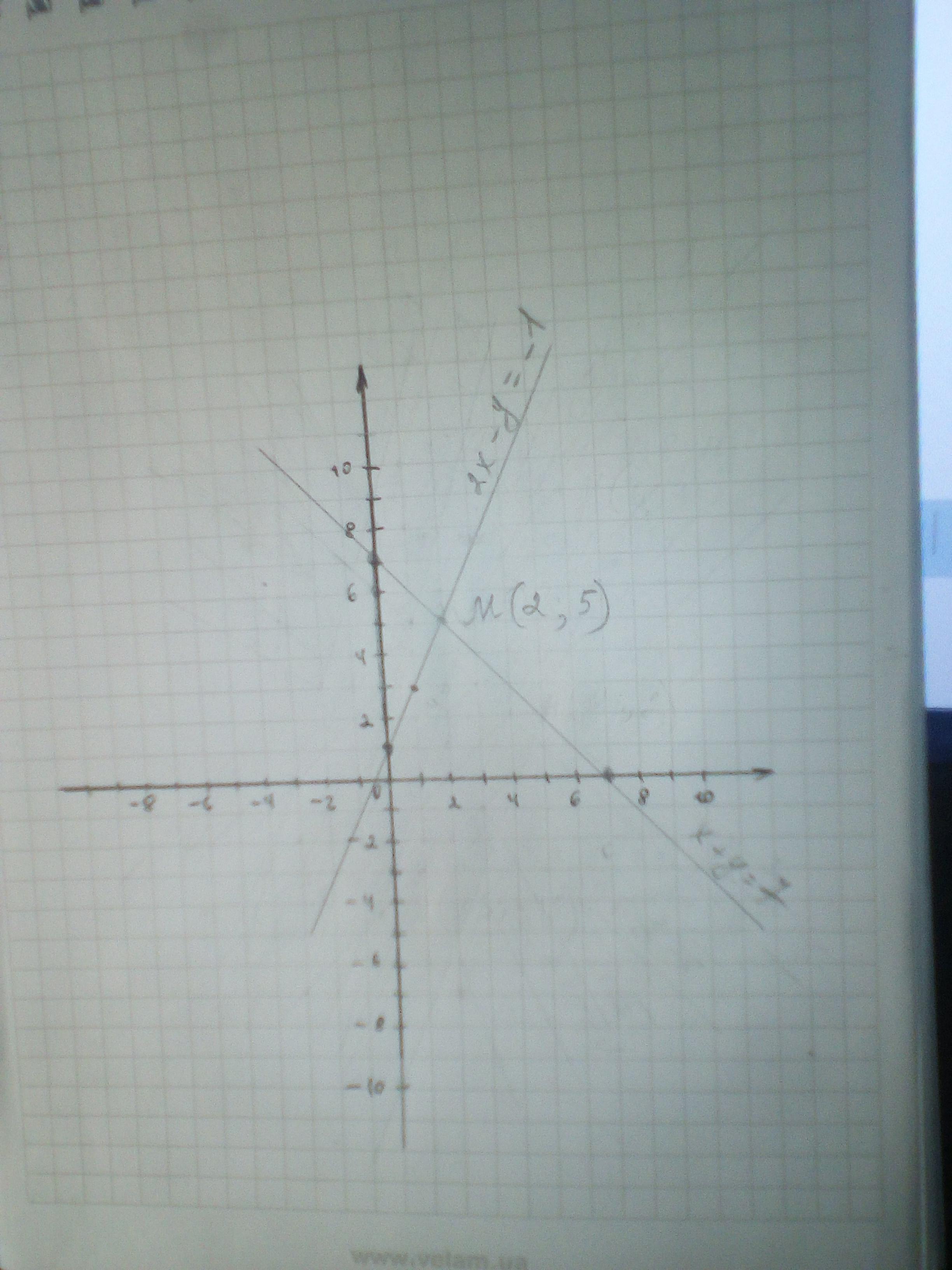 х+у=7; у=7-х; х=0 у=7; х=7 у=0