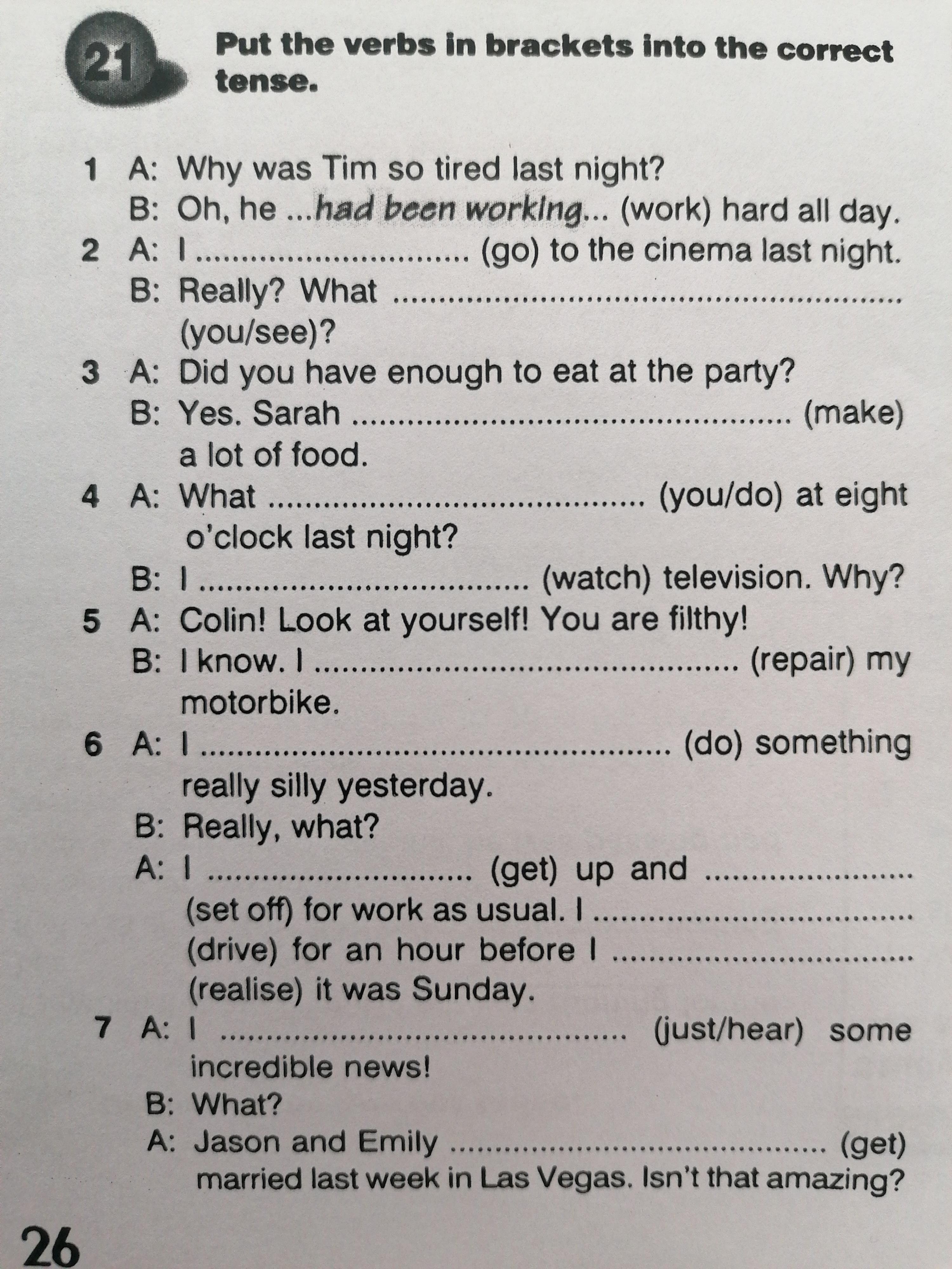 I have been going to the cinema last night. What have you seen? Sarah had been making a lot of food.What have you doing at 8 oclock last night?