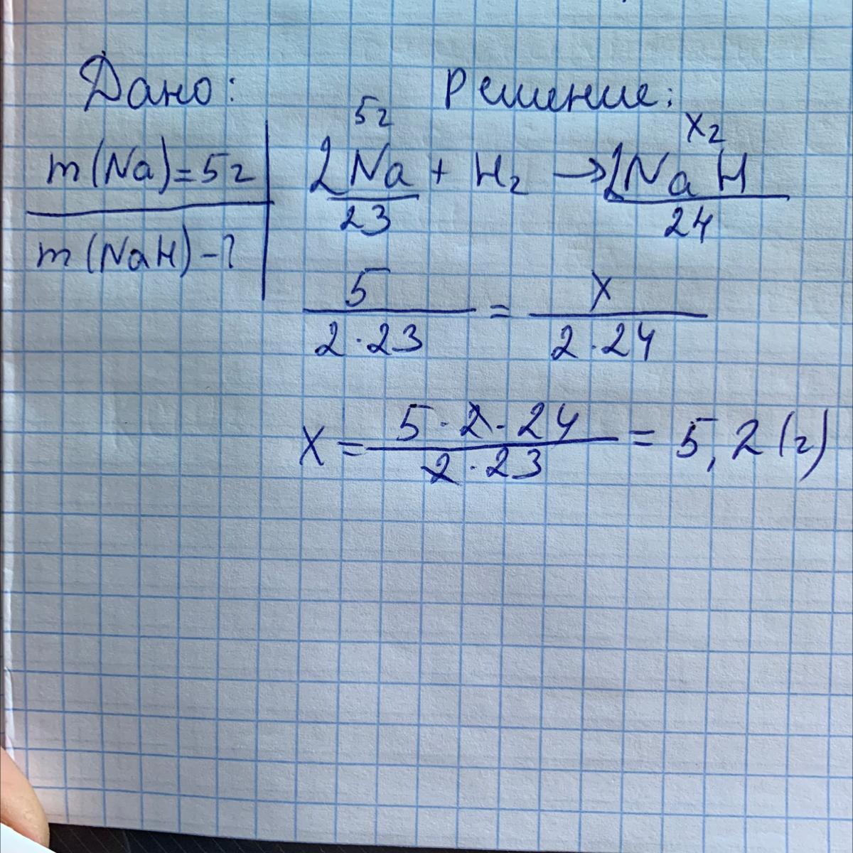3.При взаимодействии 5 г натрия (Na) с водородом (H2) образовался гидрид натрия. Вычислить массу полученного гидрида натрия (NaH2) (2 балл)