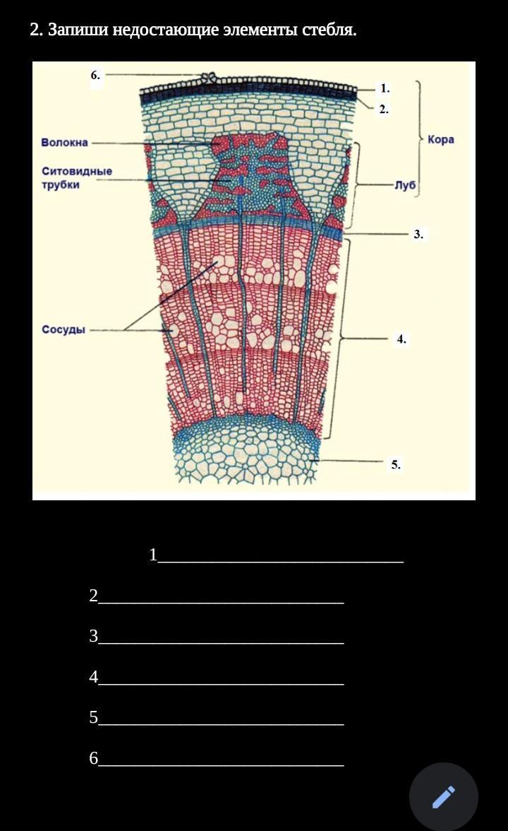 1) кожица 2) пробка 3) камбий 4) древесина 5) сердцевина 6) чечевички
