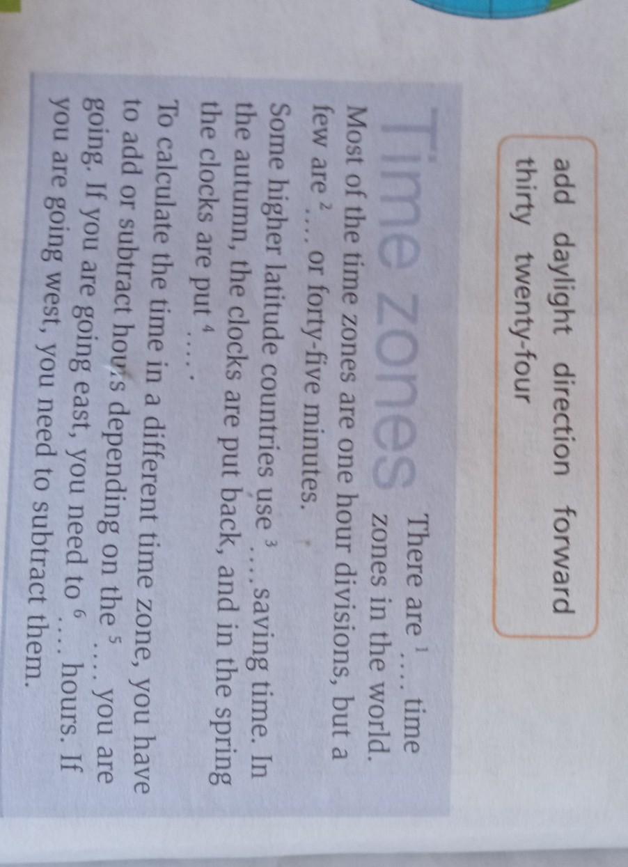 Complete the information about time zones with the words and phrases in the box. Then listen and check