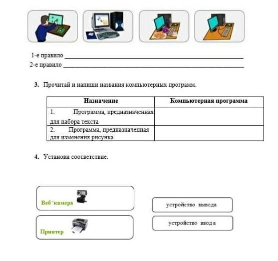 3. 1 текстовая программа 2 редактор 4. 1 веб камера устройство ввода 2 принтер устройство вывода