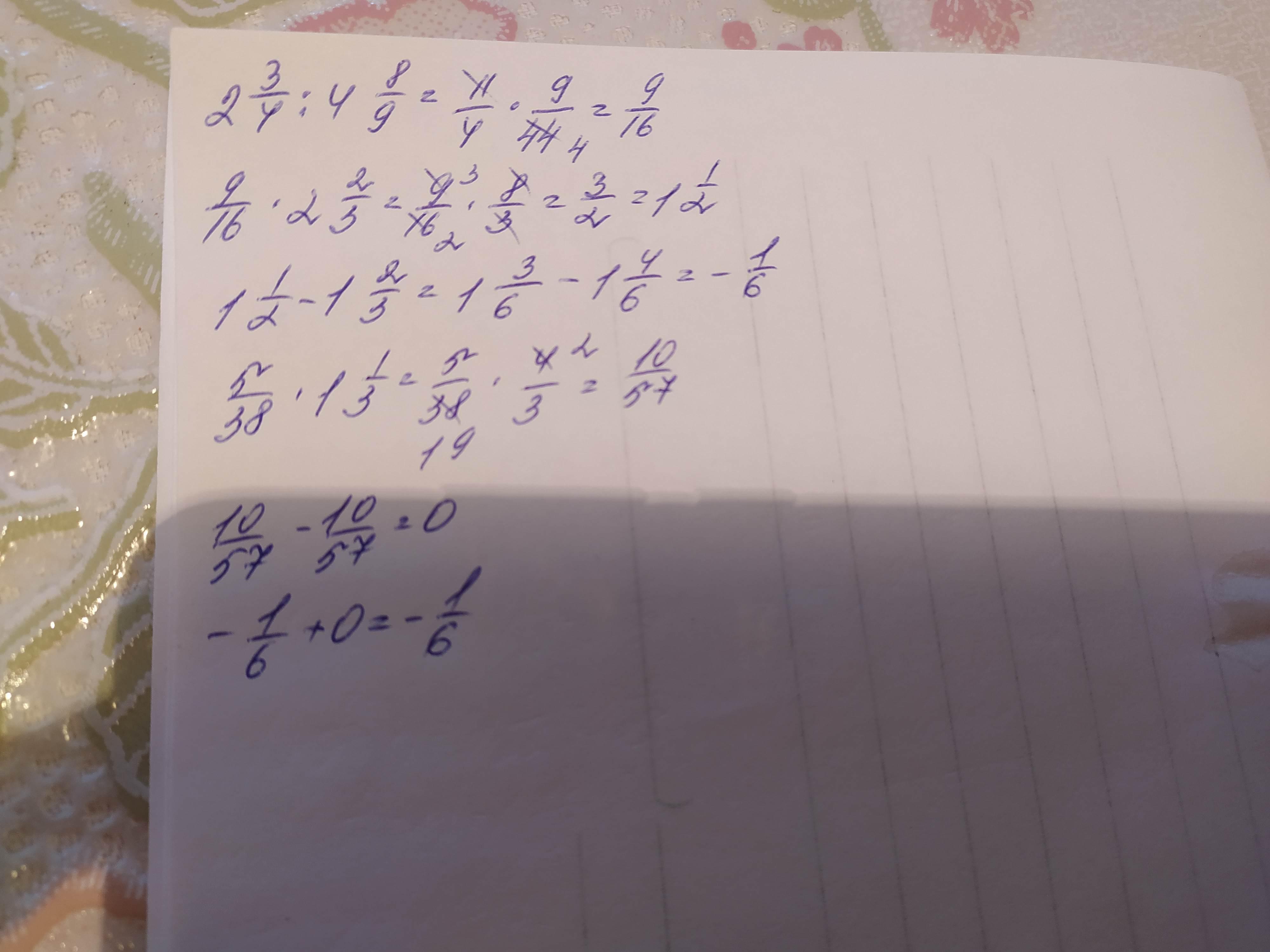 1 1/2-1 2/3=3/2-5/3=9/6-10/6=-1/6