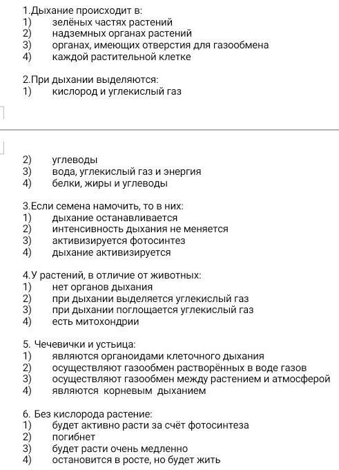 1. Дыхание происходит в: