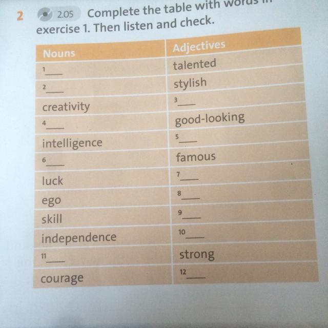 Talent; style; creavite; good-looker; intelligent; fame; lucky; egoistic; skillful; independent; strength; courageous.