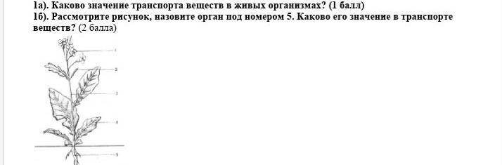 Каково значение транспорта веществ в живых организмах? Рассмотрите рисунок, назовите орган под номером 5. Каково его значение в транспорте веществ?