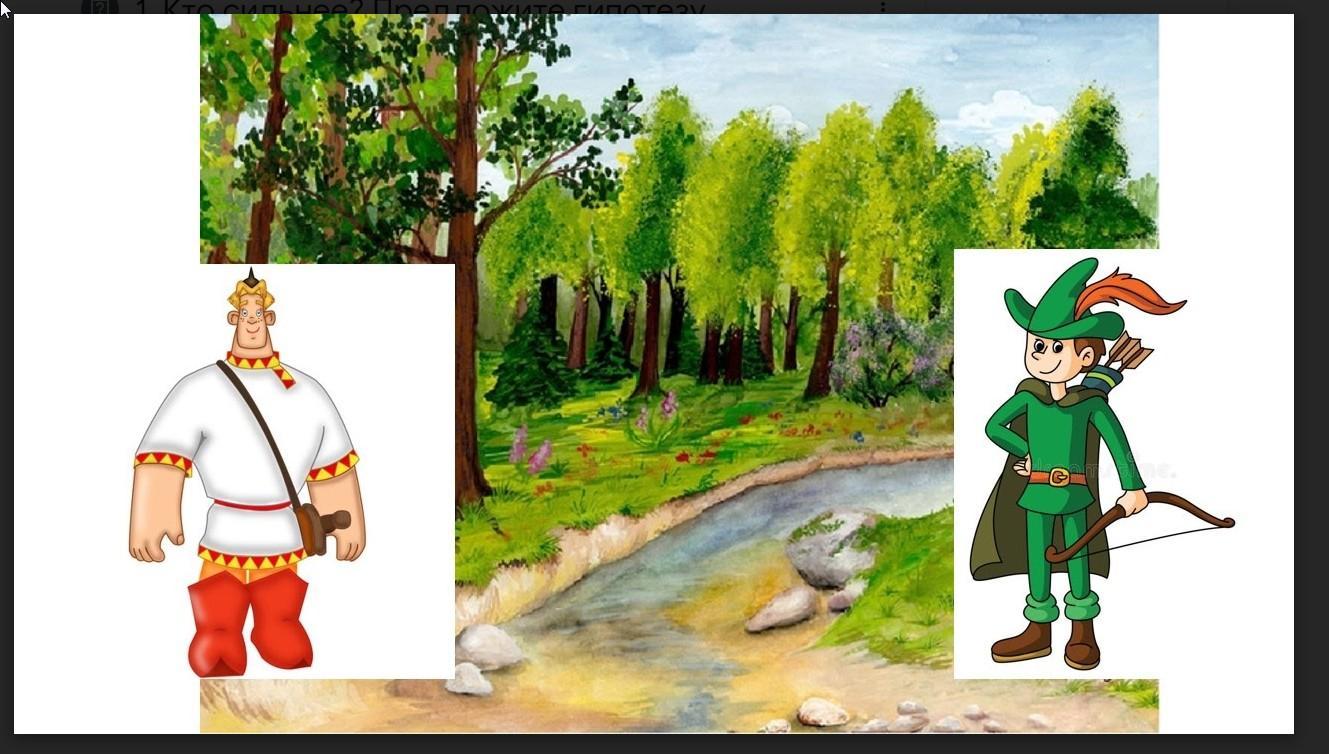 Это не значит, что силы героев одинаковы. Можно выяснить, кто из них сильнее, с помощью лука Робин Гуда или меча Алёши Поповича. Если камешков поблизости нет, то можно придумать другое задание, например кидание меча или стрельба из лука.