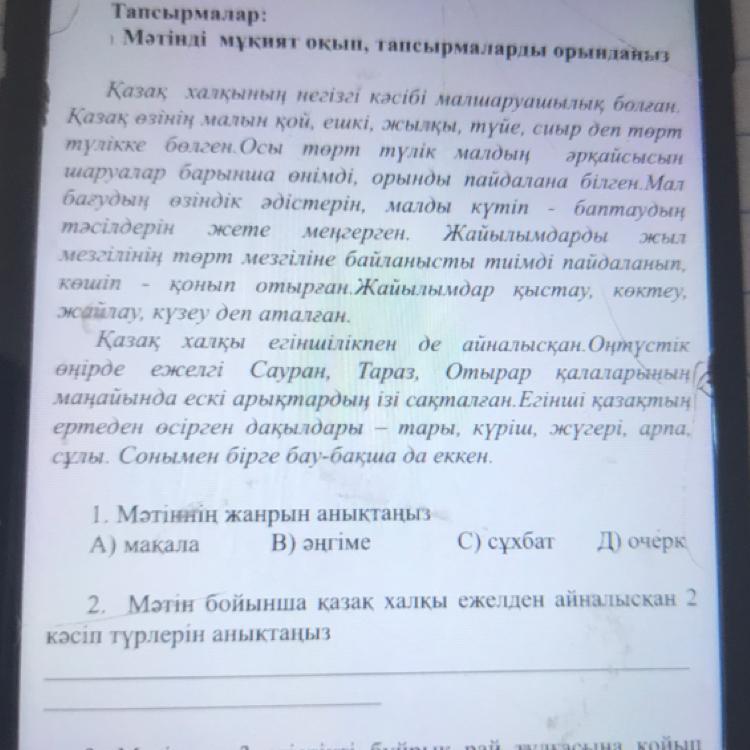4. Мына сұрақтарға жауап беріңіз: Қазақ халқы малын
