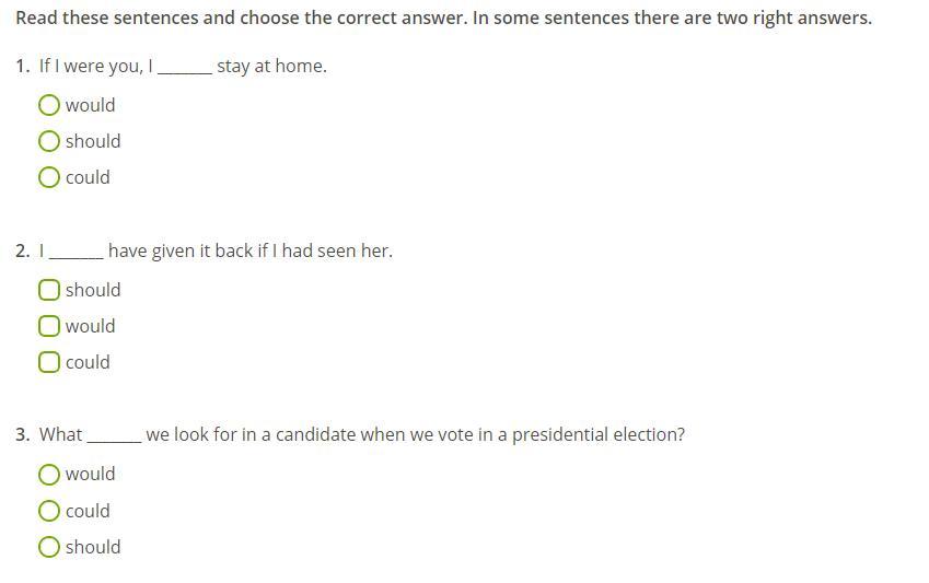 1.would 2.would,could 3.should