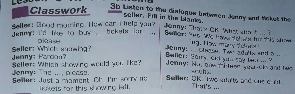 Тут короче нужно прослушать диалог и вставить слова но где аудио его нет потому и помочь ре не могу прости