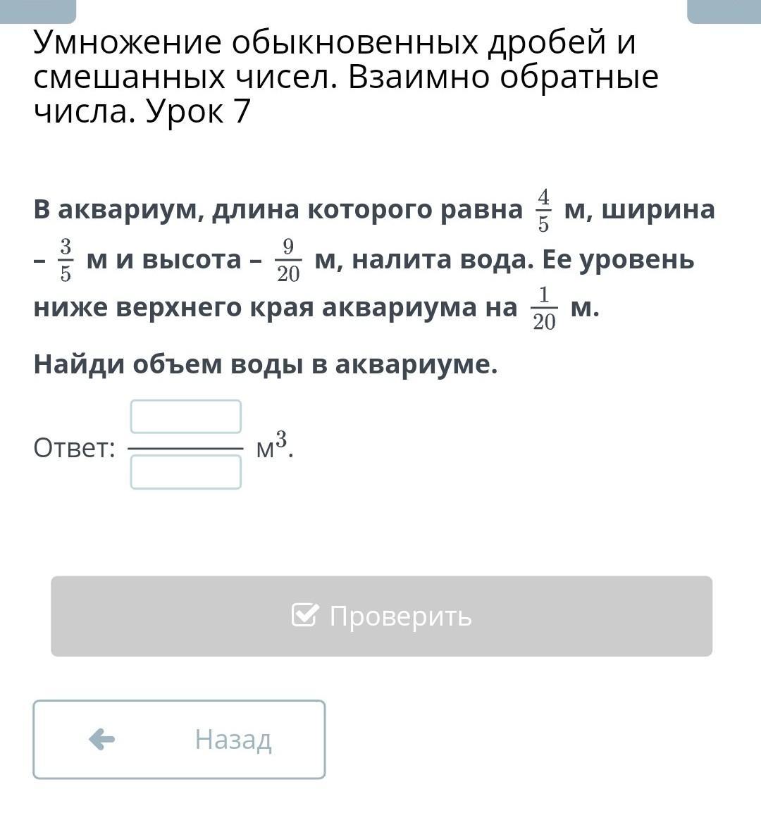 м, налита вода. Ее уровень ниже верхнего края аквариума на 1/20